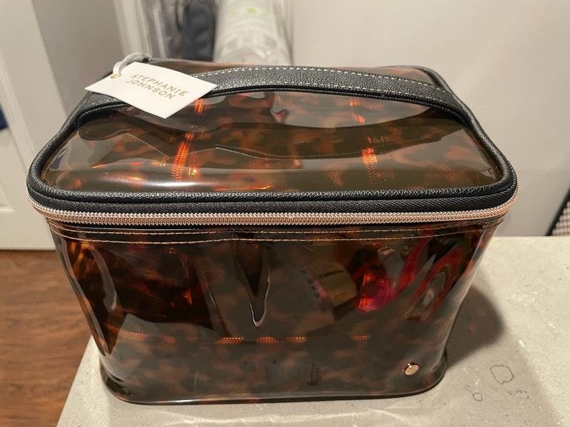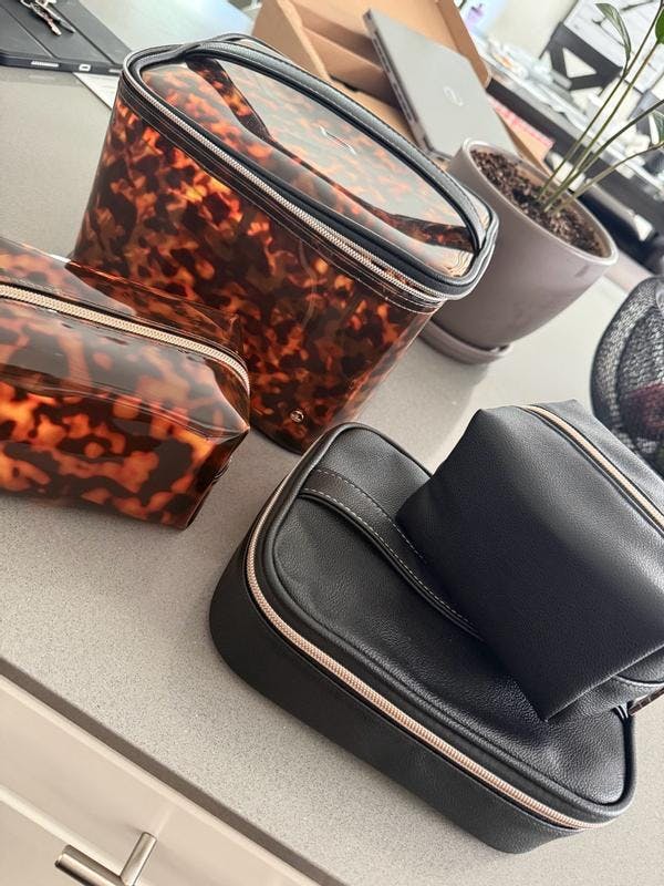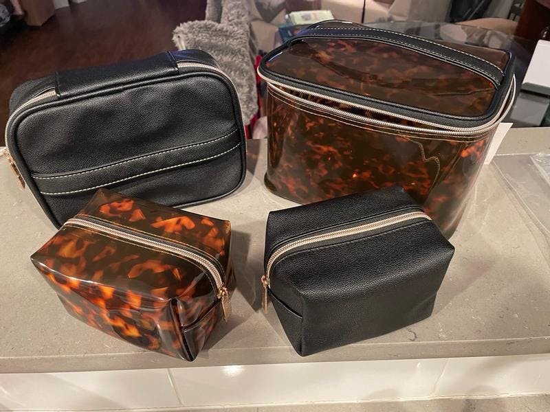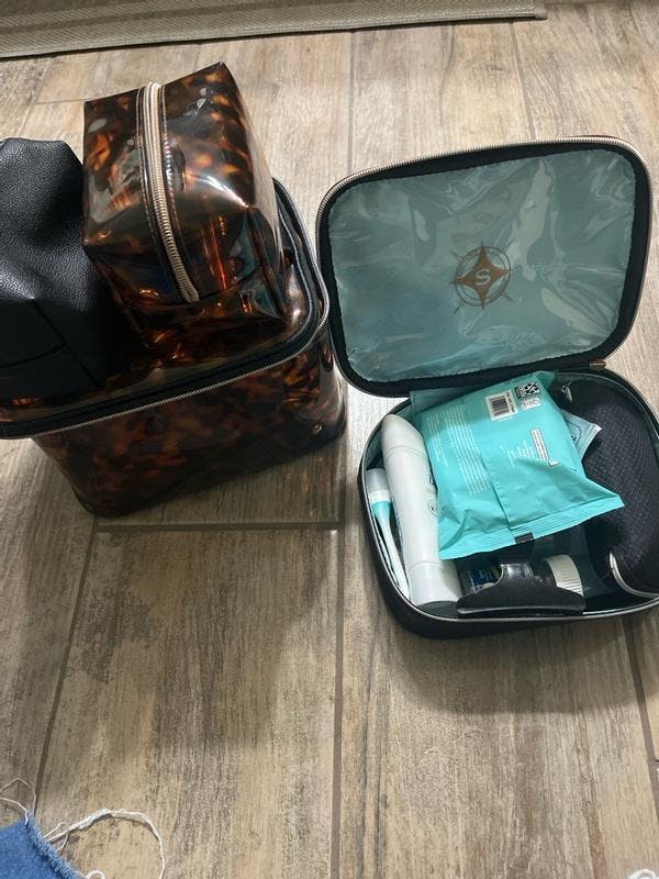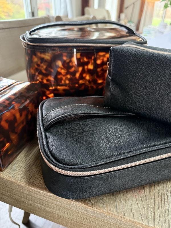 This travel organizer is the cutest. The colors are great match and it is so versatile. Four pieces in one. You can pack your medicine makeup perfumes other essential hair items and still have room for your charging cases. You can separate them or travel with them all together. They pack very well into a suitcase when you separate them. This would make a great carry-on on the plane also. Fill it with a face mask some hand sanitizer tissues and maybe your favorite snacks for the ride. I'm going to get a lot of use out of these pieces. Oh this would also make a great gift.