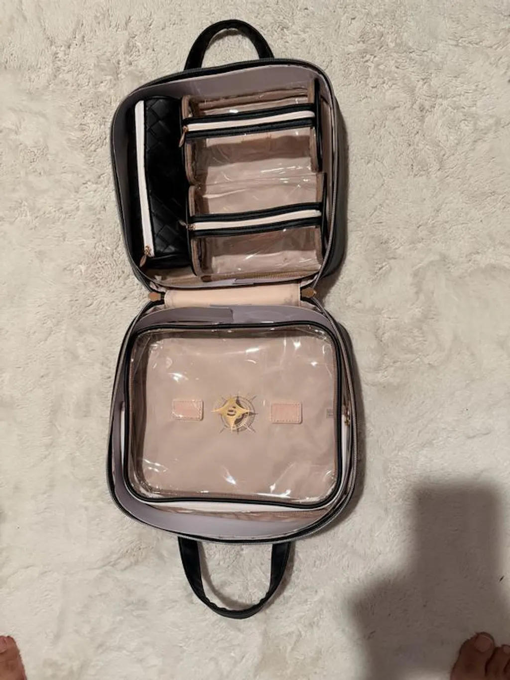 Create your own personal dressing room abroad. Tall handles on the Martha Large Cosmetic Case make it a breeze to carry around or hang conveniently over a door. Ensuring that even away from home, your belongings are neatly stored and your accommodations remain tidy.