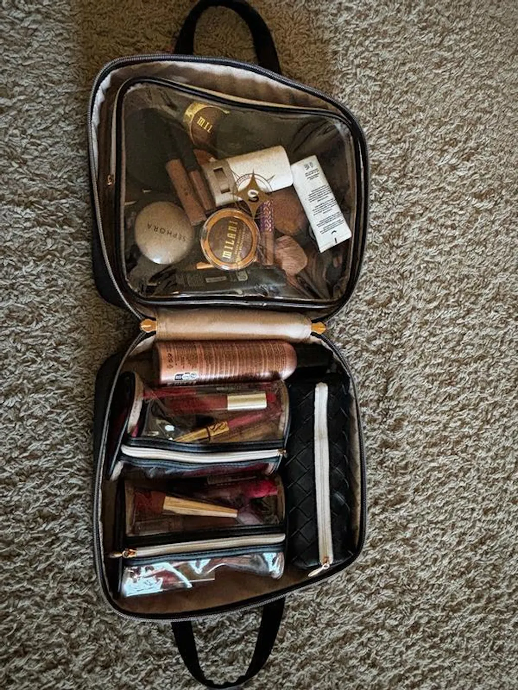 The magic of the Martha Large Cosmetic Case lies in its three removable compartments, perfect for categorizing and organizing your beauty essentials. These versatile pouches can be used to separate your items based on type or need—one for makeup, one for skincare, and one for accessories. You can easily lift out a pouch to find exactly what you need without rummaging through the rest, keeping everything neatly in its place.
